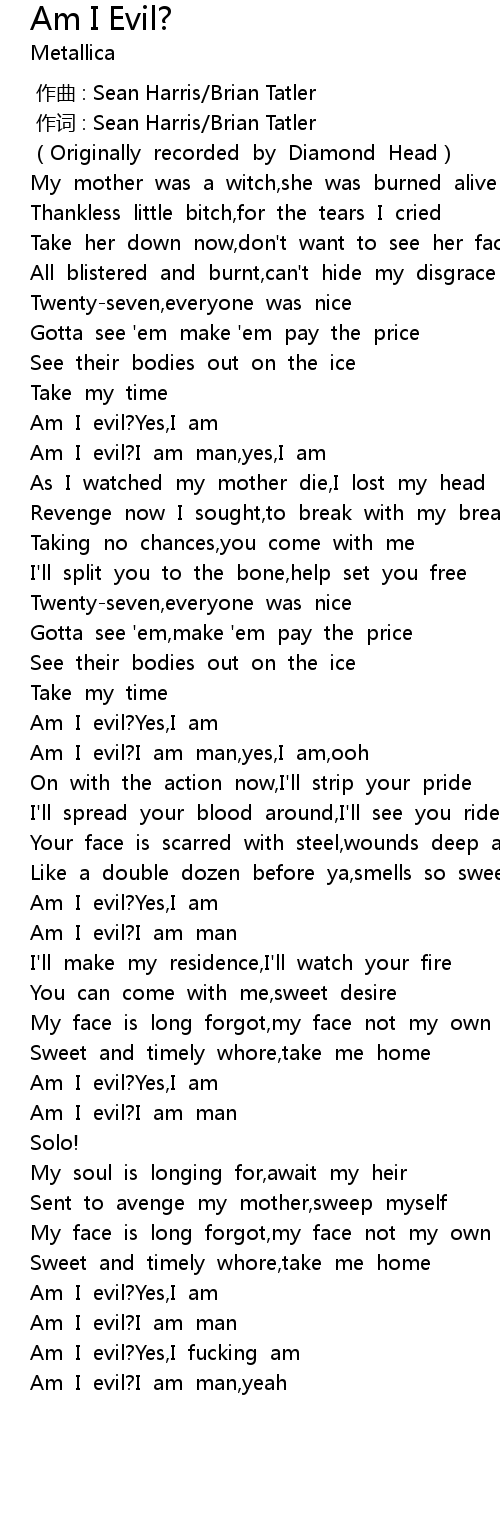 | [02:46.41] | Am I evil?I am man,yes,I am |