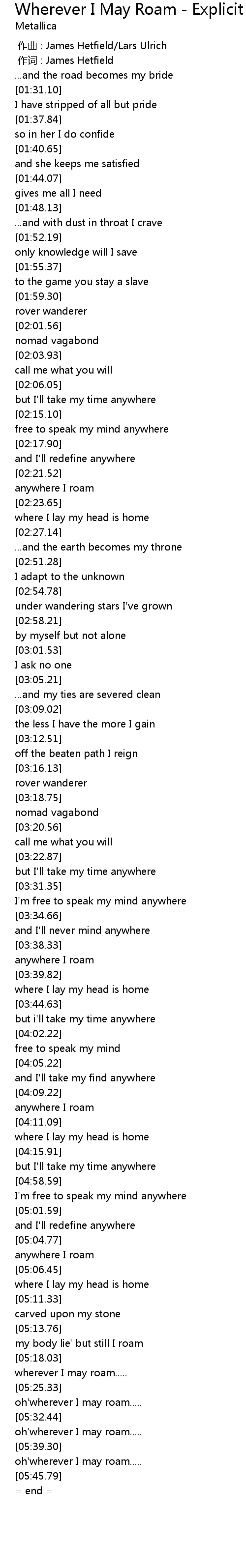 | [00:00.00] | 作曲 : James Hetfield/Lars Ulrich |