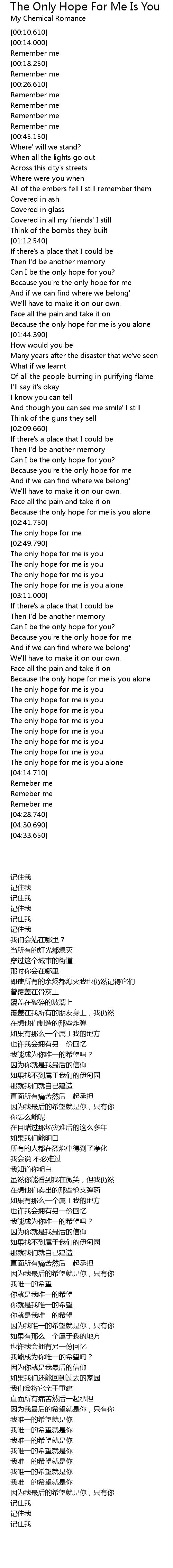 The only hope for me is you |