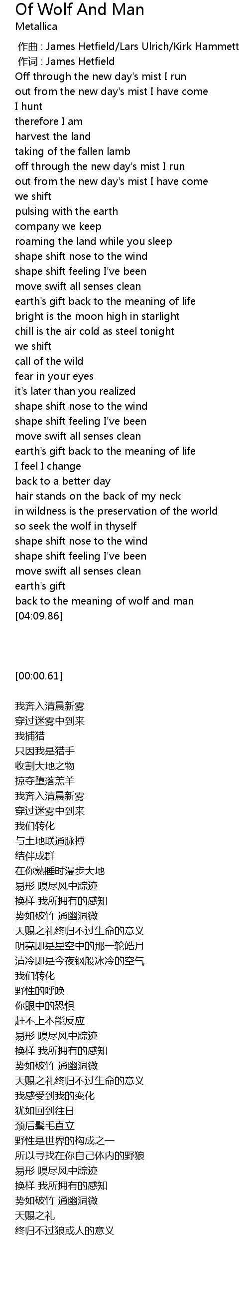 | [00:00.00] | 作曲 : James Hetfield/Lars Ulrich/Kirk Hammett |
