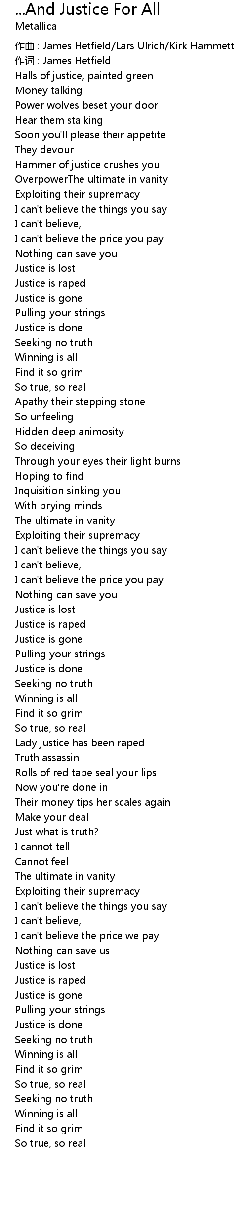 | 作词 : James Hetfield | |