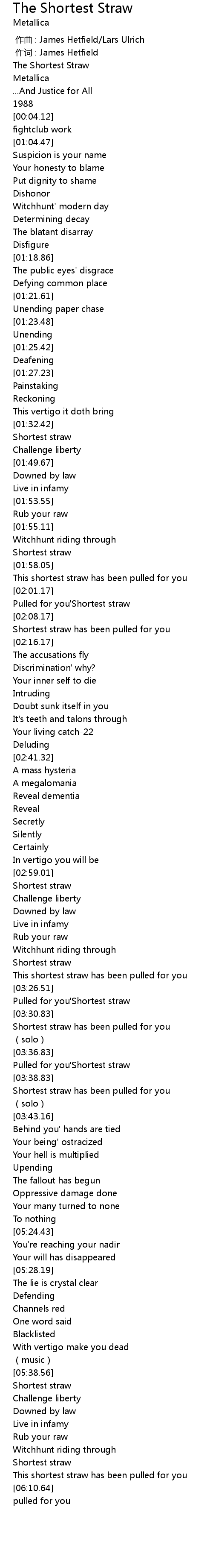 | [00:00.335] | 作词 : James Hetfield |