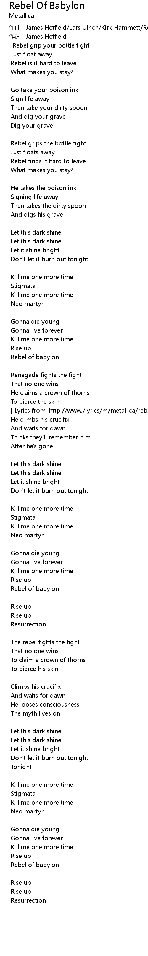 | [ Lyrics from: http://www./lyrics/m/metallica/rebel_of_babylon.html ] | |