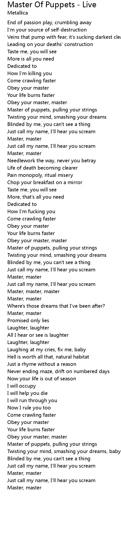 Master of puppets, pulling your strings |