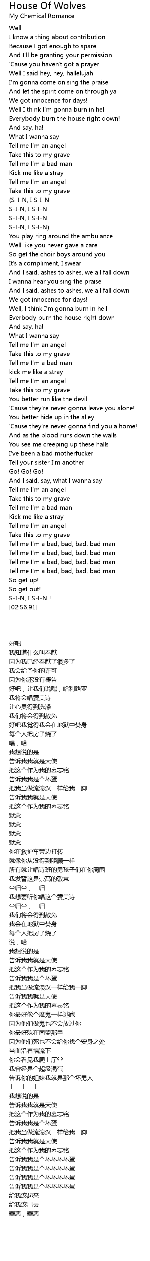 | [01:38.91] | Tell me I' m a bad man |