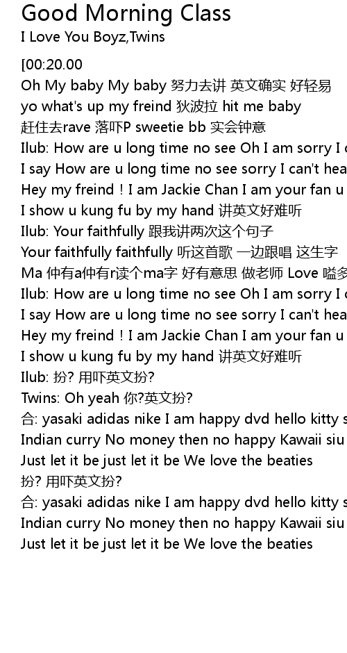 | [02:28.10] | Twins: Oh yeah nǐ? yīng wén bàn? |