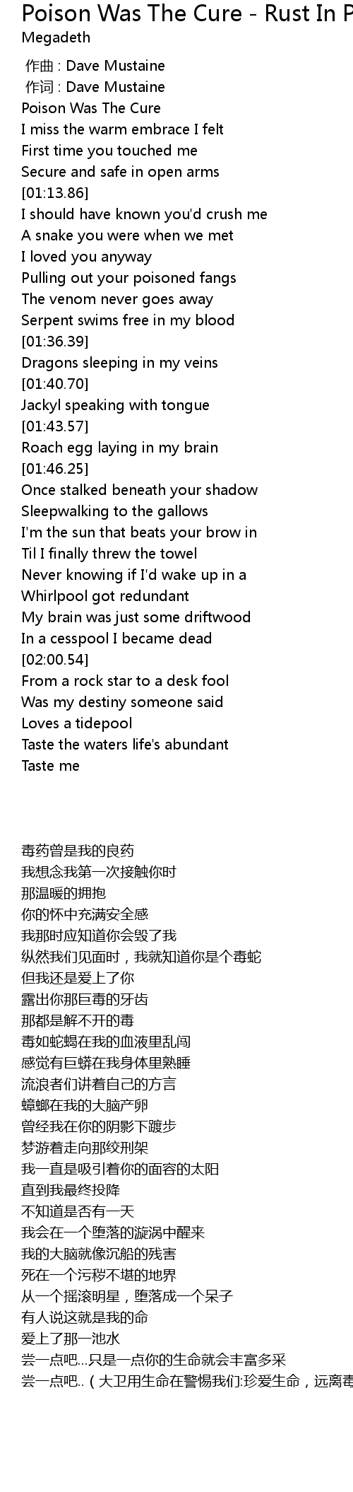 | [00:00.676] | 作词 : Dave Mustaine |