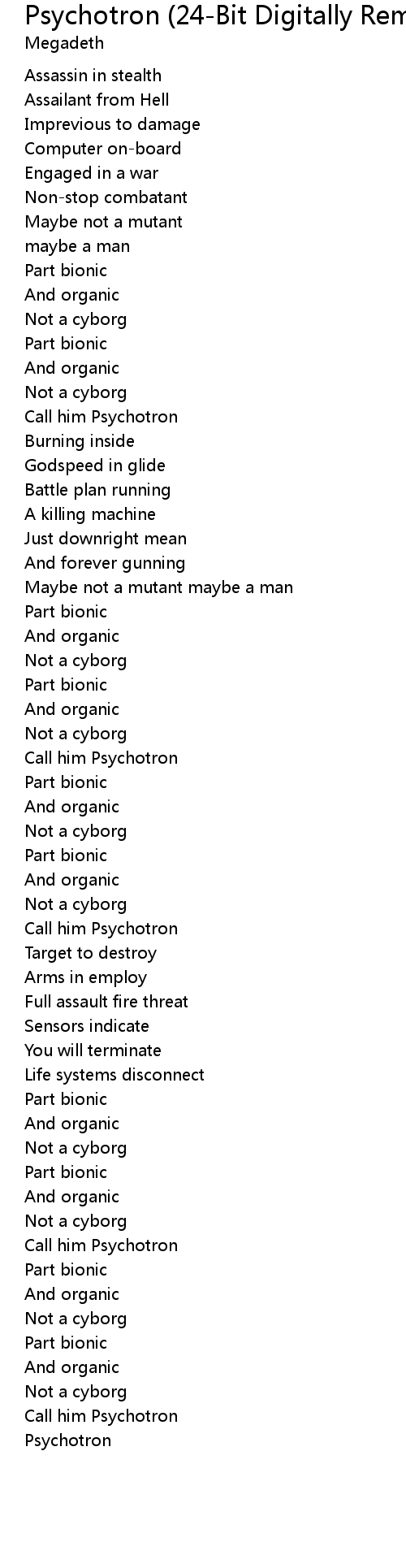 | Song | Psychotron (24-Bit Digitally Remastered 04) () |