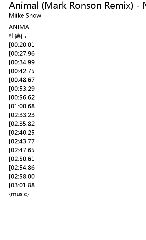 | Song | Animal (Mark Ronson Remix) - Mark Ronson Remix |