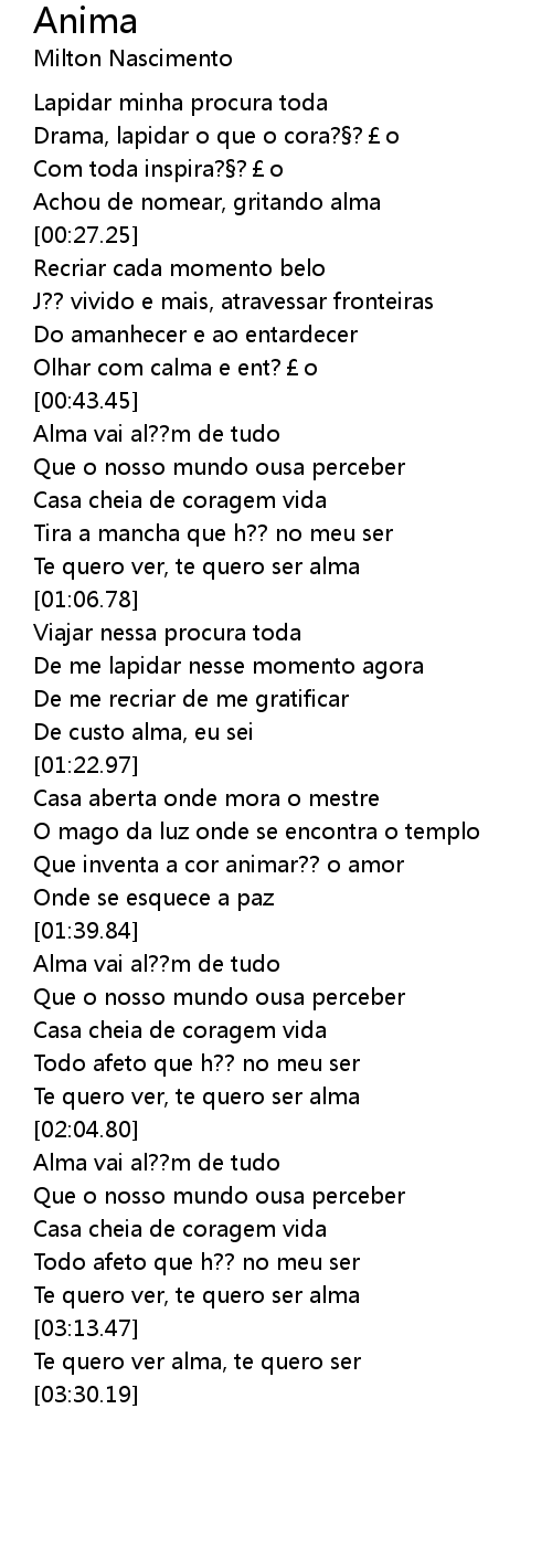 | [00:43.83] | Alma vai al?? m de tudo |