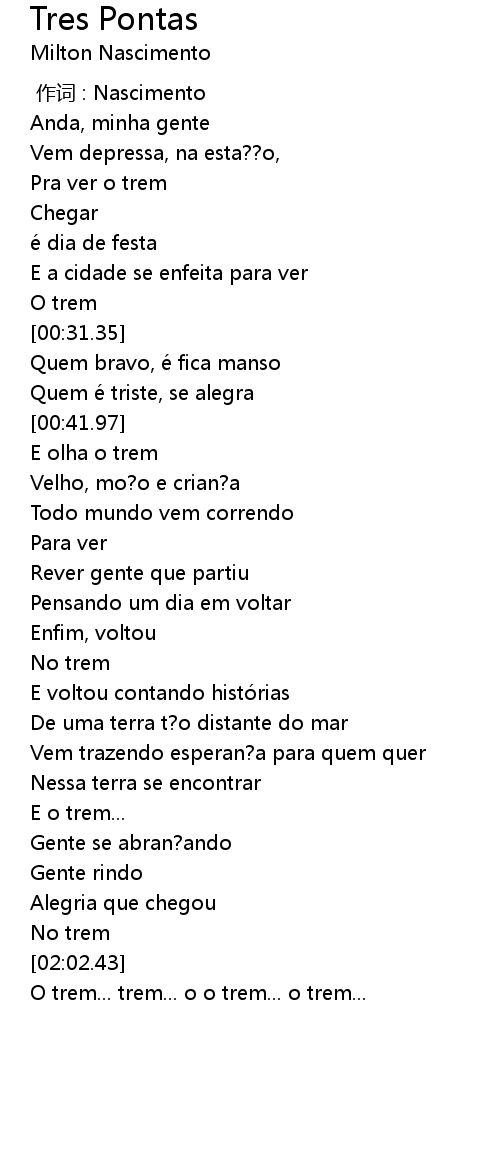 | [00:43.07] | E olha o trem |