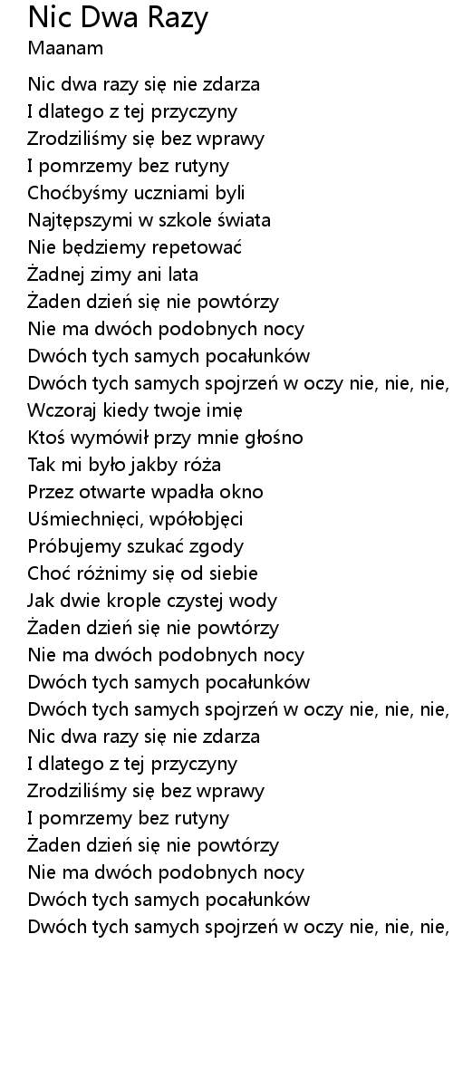 | Dwo ch tych samych spojrze w oczy nie, nie, nie, nie |