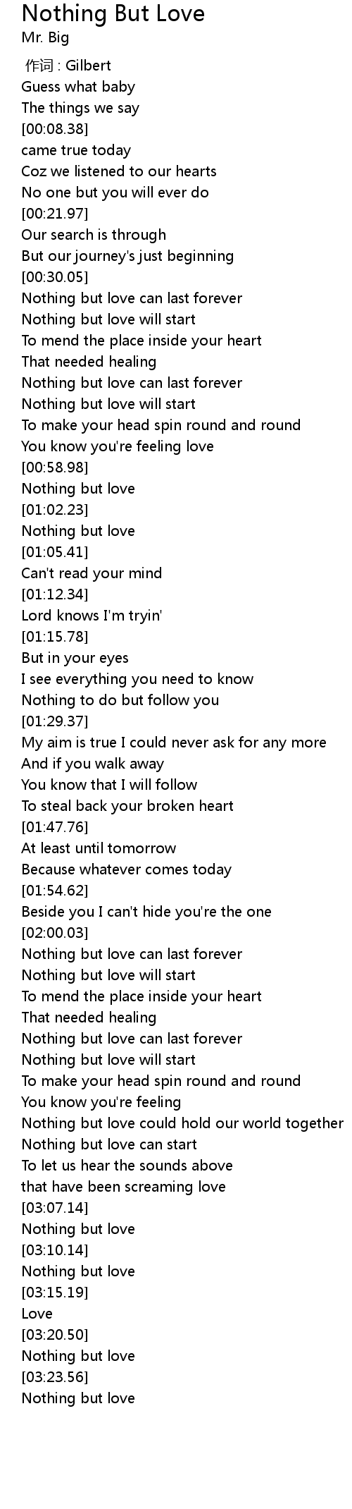 | [03:22.00] | Nothing but love |