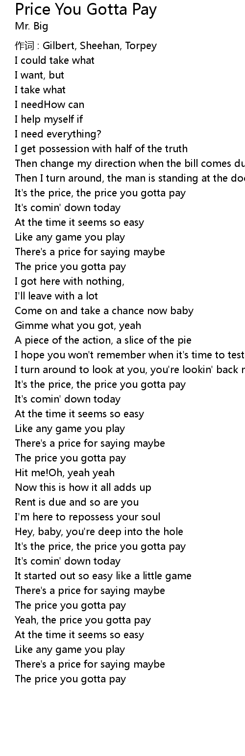 | The price you gotta pay | |