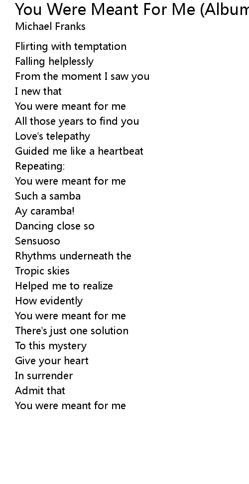 | You were meant for me | |