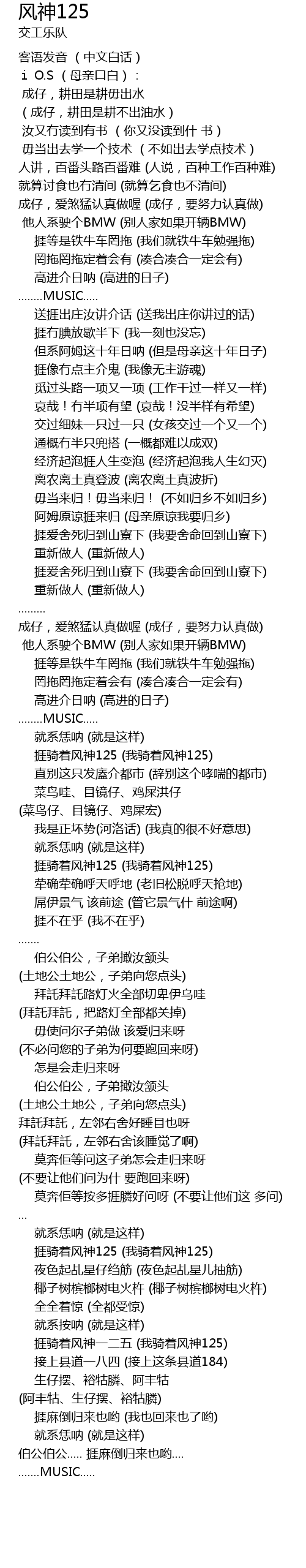 | [06:59.91] | 捱骑着风神125 (我骑着风神125) |