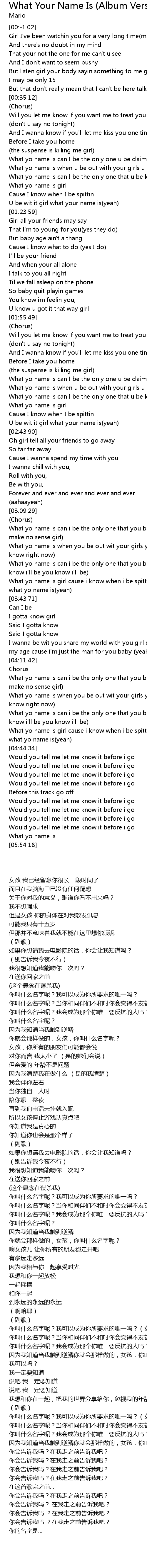 | [04:35.56] | What yo name is girl cause i know when i be spittin u be wit it girl what yo name is(yeah) |