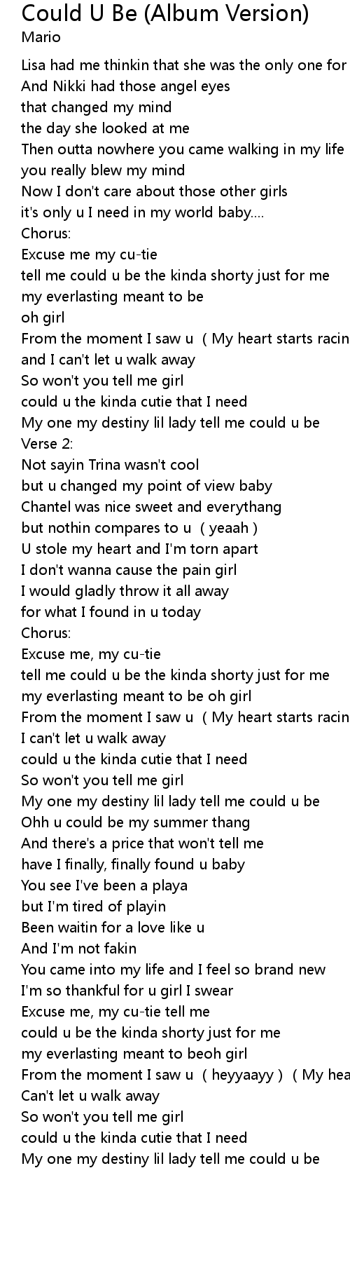 | [03:14.50] | could u be the kinda shorty just for me |