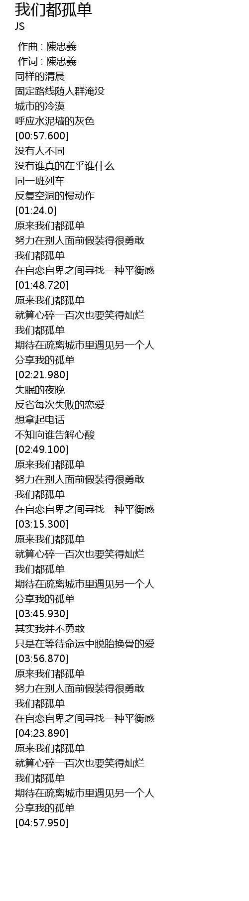 | [03:59.520] | 原来我们都孤单 |