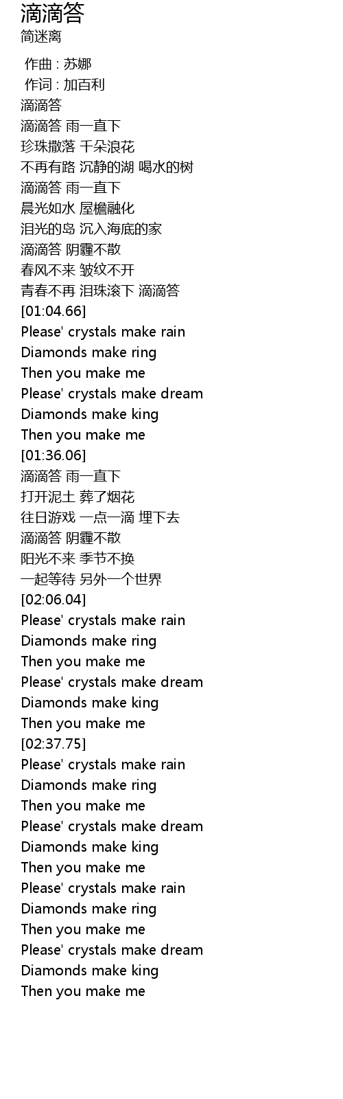 | [02:09.99] | Please' crystals make rain |