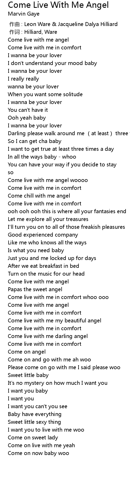 | [00:13.35] | Come live with me angel |