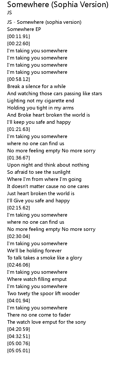 | [00:00.00] | JS - Somewhere (sophia version) |