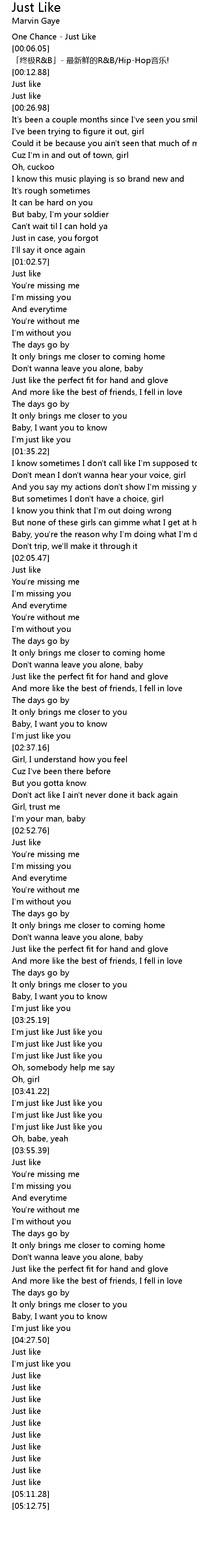 | [00:01.06] | One Chance - Just Like |
