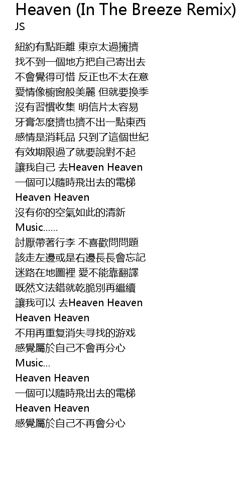 | [02:21.45] | 讓我可以 去Heaven Heaven |