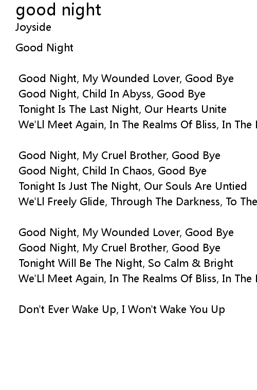 | Don't Ever Wake Up, I Won't Wake You Up |