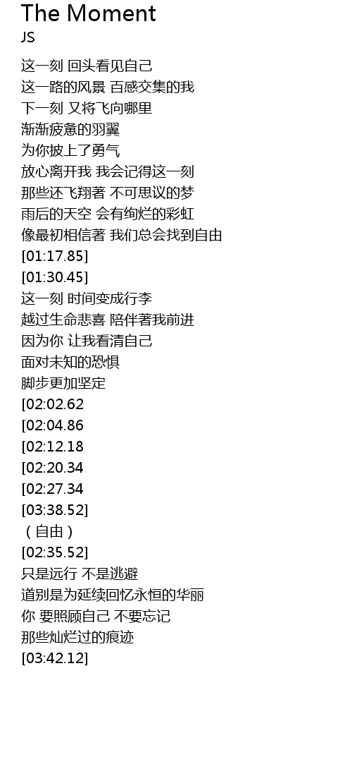 | [00:45.38] | 放心离开我 我会记得这一刻 |