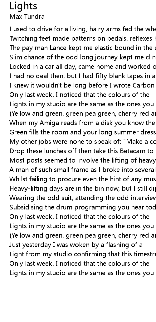 I used to drive for a living, hairy arms fed the wheel thorough my palms |