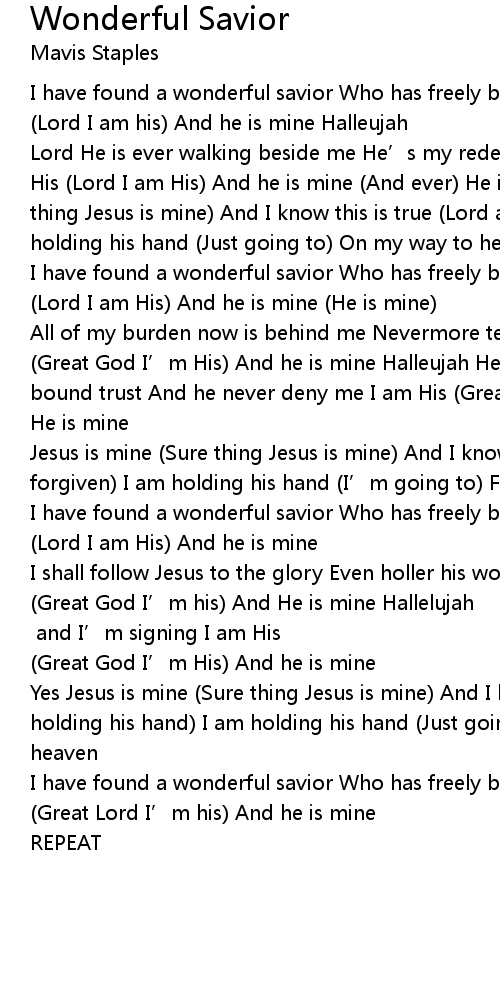 | I have found a wonderful savior Who has freely blessing me forever I am his Great Lord I' m his And he is mine | |
