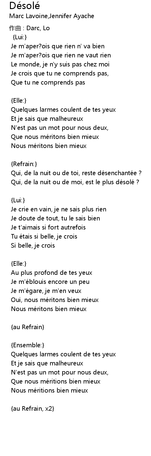 | Qui, de la nuit ou de moi, est le plus désolé ? | |