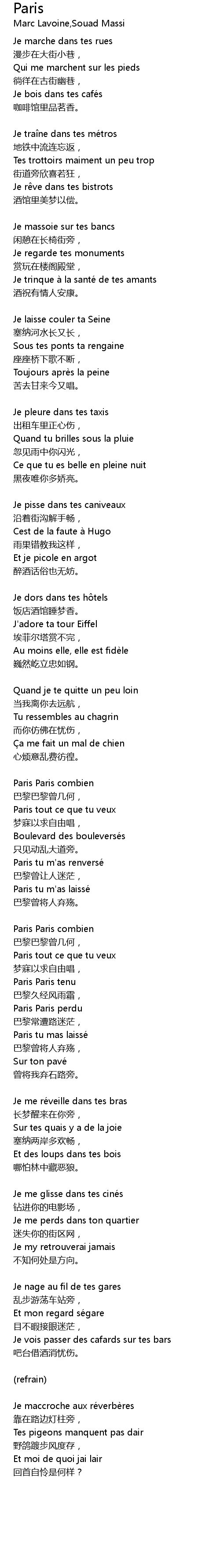 | Paris tu m' as renverse | |