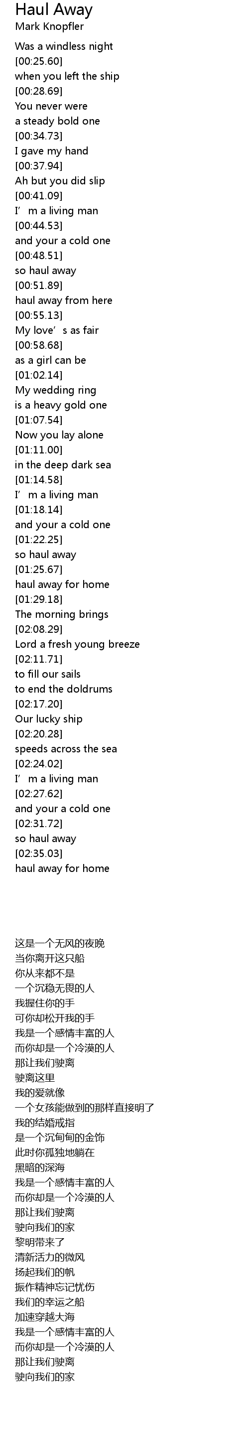 | [02:33.33] | so haul away |