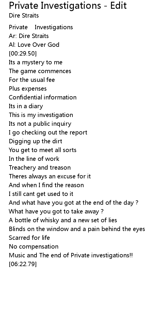 Music and The end of Private investigations!! |