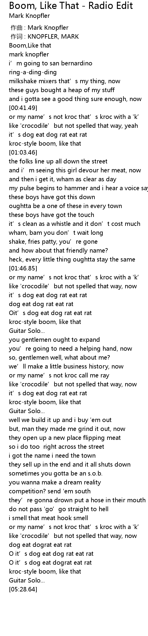 | [01:57.19] | it' s dog eat dog rat eat rat |