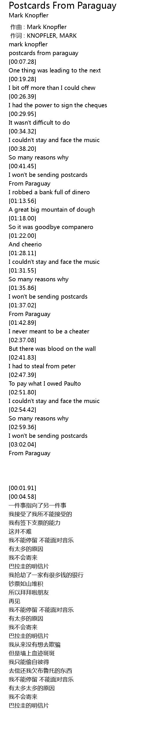 | [00:00.00] | zuo qu : Mark Knopfler |