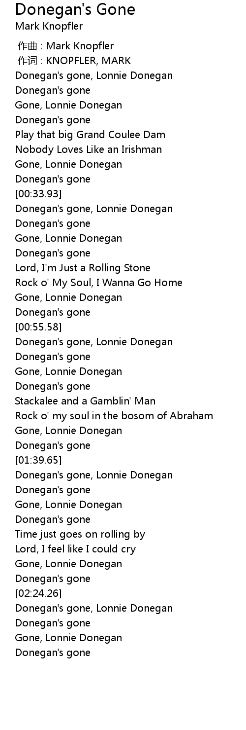 | [00:37.87] | Donegan' s gone, Lonnie Donegan |