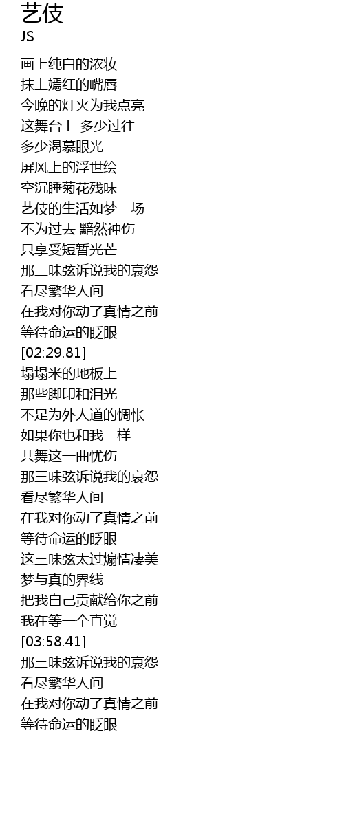 | [01:30.58] | 艺伎的生活如梦一场 |