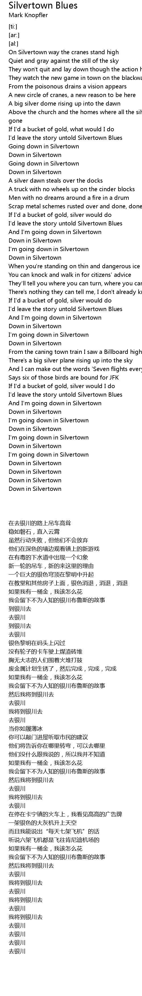 I'd leave the story untold Silvertown Blues |