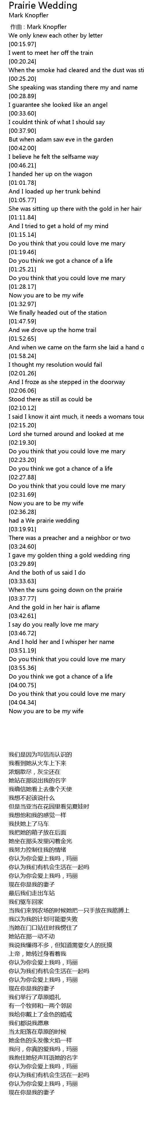 | [00:00.00] | zuo qu : Mark Knopfler |