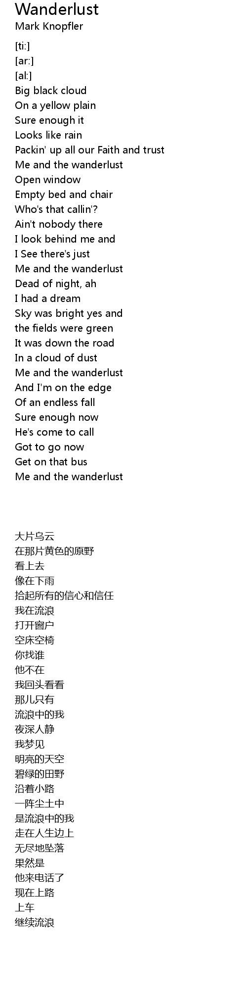 | [02:40.81] | Me and the wanderlust |