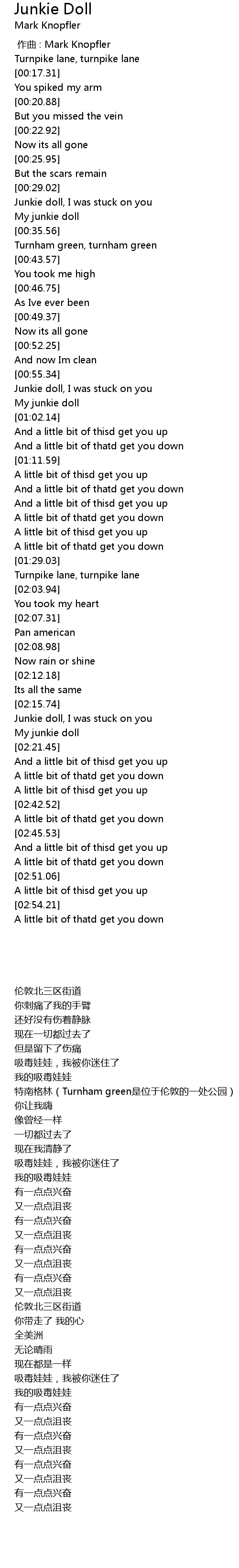 | [00:00.00] | zuo qu : Mark Knopfler |