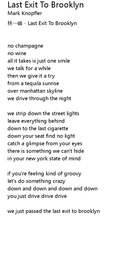| Song | Last Exit To Brooklyn |