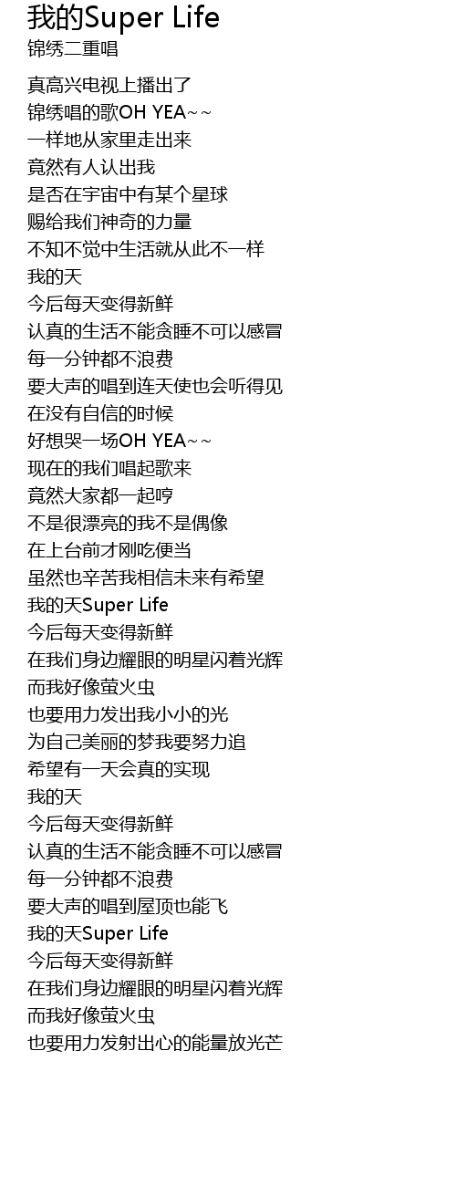 | [01:40.83] | 我的天Super Life |
