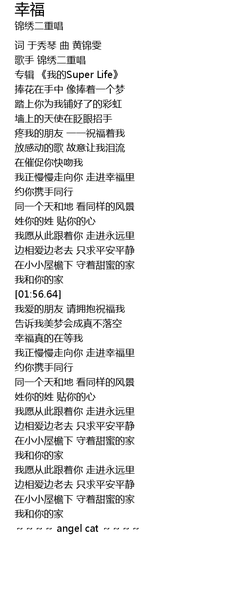 | [00:59.77] | 我正慢慢走向你 走进幸福里 |