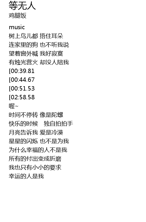 | [02:39.88][00:39.81] | 为什么幸福的人不是我 |