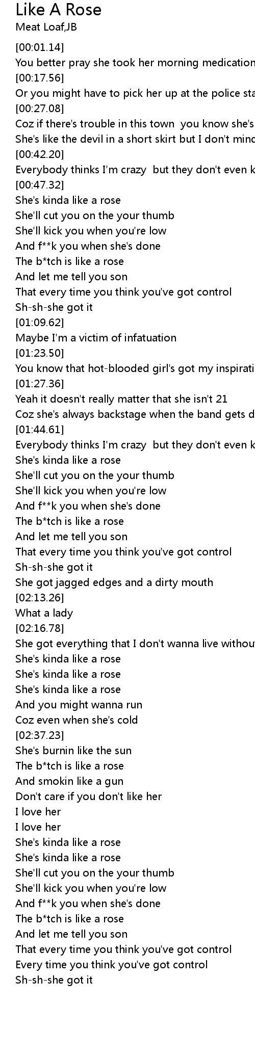 | [01:59.11] | The b*tch is like a rose |
