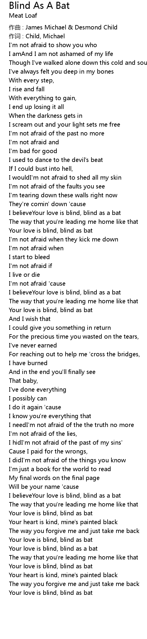 | Your love is blind, blind as a bat | |